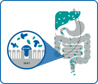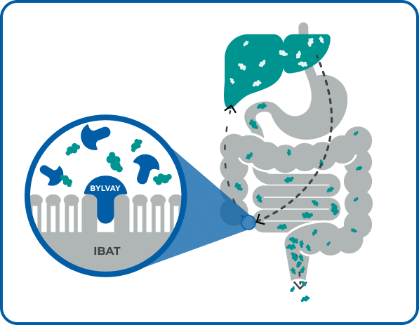 BYLVAY inhibits the IBAT and decreases bile acid recycling back to the liver
